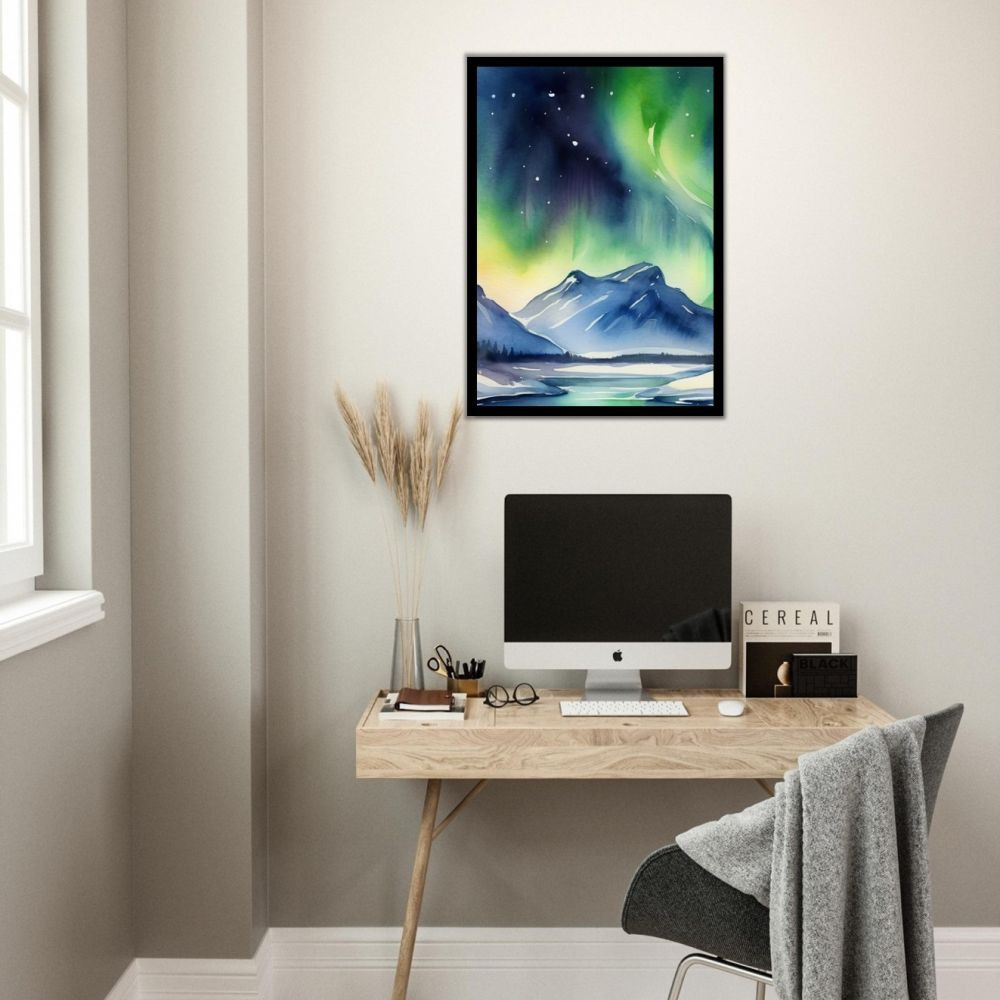 Wandbild 'Eine Landschaft mit Polarlicht - Aquarell'