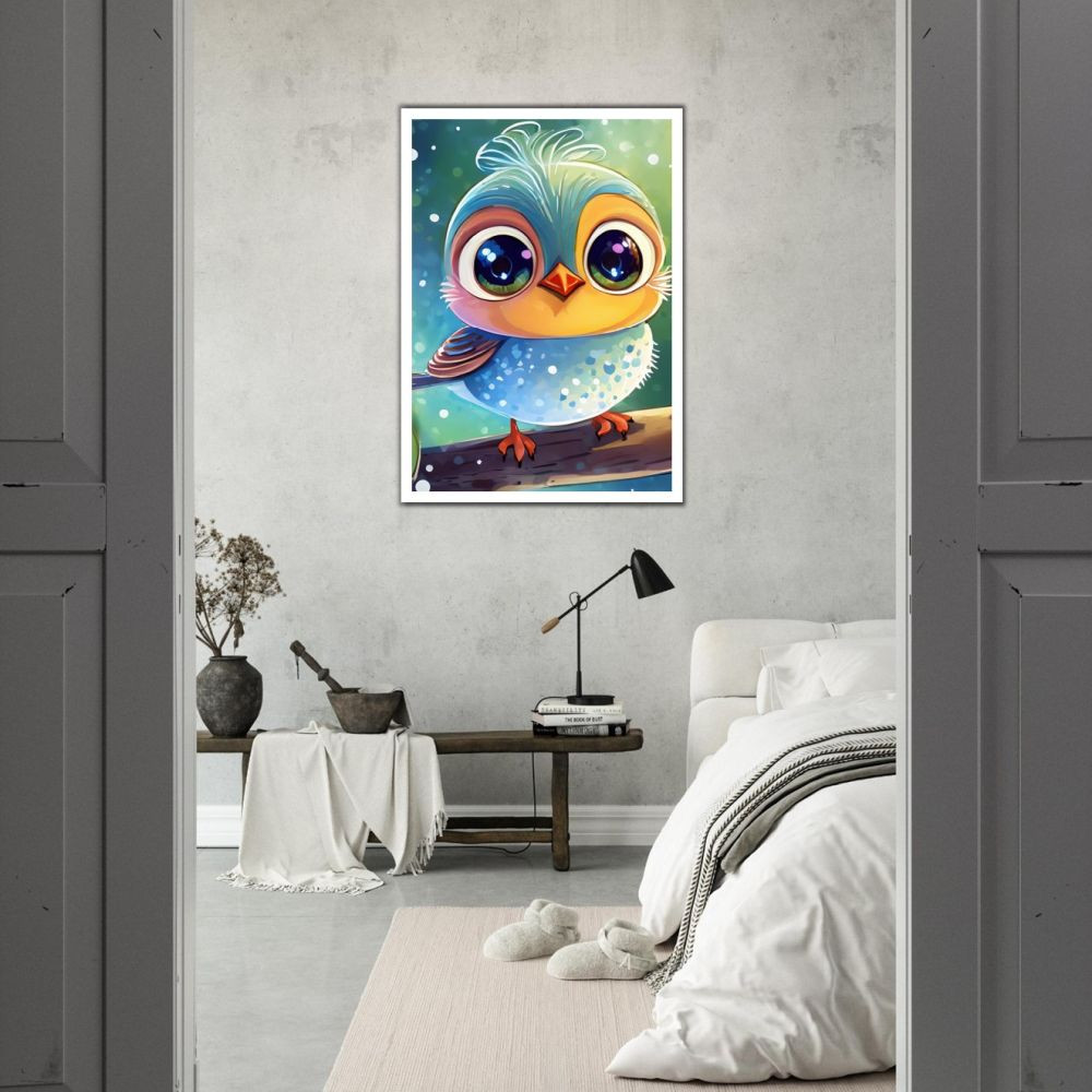 Ein Wandbild mit dem Motiv „Vogel“ eignet sich hervorragend für das Wohnzimmer oder das Esszimmer, da es eine fröhliche und einladende Atmosphäre schafft. Im Wohnzimmer könnte das Bild über einer gemütlichen Couch platziert werden, um einen zentralen Blickfang zu schaffen. Eine Wandfarbe in einem sanften Himmelblau oder einem warmen, neutralen Ton wie Beige oder Hellgrau würde das Bild wunderbar zur Geltung bringen. Diese Farben schaffen eine ruhige und harmonische Umgebung, die dem Bild den nötigen Raum gibt, um sich zu entfalten, während sie gleichzeitig eine entspannende Atmosphäre fördern. Die Ausstattung des Wohnzimmers sollte stilvoll und gemütlich sein, um das Vogelbild optimal zu ergänzen. Eine bequeme Couch in einem neutralen Farbton, kombiniert mit bunten Kissen, kann dem Raum eine lebendige Note verleihen. Ein Couchtisch aus Holz oder Glas würde den modernen Look des Raumes unterstreichen und gleichzeitig die Verbindung zur Natur fördern, was gut zum Vogelmotiv passt. Um die Gemütlichkeit zu steigern, könnten weitere dekorative Elemente wie eine weiche Decke, einige Pflanzen oder ein Teppich in warmen Tönen hinzugefügt werden. Diese Details schaffen eine einladende Atmosphäre, die ideal für gesellige Zusammenkünfte ist. Das Motiv „Vogel“ kann jedoch auch hervorragend im Esszimmer zur Geltung kommen. Hier könnte die Wandfarbe in einem fröhlichen Gelb oder einem sanften Grün gewählt werden, um eine lebendige und einladende Umgebung zu schaffen. Diese Farben fördern eine positive Stimmung und lassen das Bild strahlen, was besonders in einem Raum wichtig ist, in dem gemeinsam gegessen und Zeit verbracht wird. Das Bild könnte über dem Esstisch platziert werden, um eine inspirierende Kulisse für gesellige Mahlzeiten zu schaffen. Ein massiver Holztisch mit passenden Stühlen würde den Charakter des Raumes unterstreichen und eine harmonische Verbindung zur Natur herstellen. Ein Wandbild mit dem Motiv „Vogel“ ist auch für das Kinderzimmer geeignet, da es die Fantasie anregt und eine fröhliche Atmosphäre schafft. In diesem Fall könnte die Wandfarbe in einem lebhaften Himmelblau oder einem fröhlichen Gelb gewählt werden, um eine spielerische Umgebung zu schaffen. Diese Farben fördern die Kreativität und das Wohlbefinden von Kindern und lassen das Bild gleichzeitig strahlen. Das Bild könnte neben dem Bett oder in der Spielecke aufgehängt werden, um die Fantasie der Kinder anzuregen und sie dazu zu inspirieren, von ihren eigenen Abenteuern in der Natur zu träumen. Im Kinderzimmer könnte die Möblierung bunt und kinderfreundlich gestaltet sein, mit einem robusten Bett, einem Schreibtisch für kreative Projekte und einem weichen Teppich, der zum Spielen einlädt. Kuschelige Kissen und eine Auswahl an Spielzeugen könnten den Raum zusätzlich auflockern und eine einladende Atmosphäre schaffen. Das Motiv „Vogel“ würde die Kinder dazu inspirieren, von ihren eigenen Abenteuern mit Tieren und in der Natur zu träumen und ihre Vorstellungskraft zu entfalten. Insgesamt ist ein Wandbild mit dem Motiv „Vogel“ eine vielseitige und charmante Wahl, die sowohl im Wohnzimmer als auch im Esszimmer oder Kinderzimmer eine wunderbare Ergänzung darstellt.